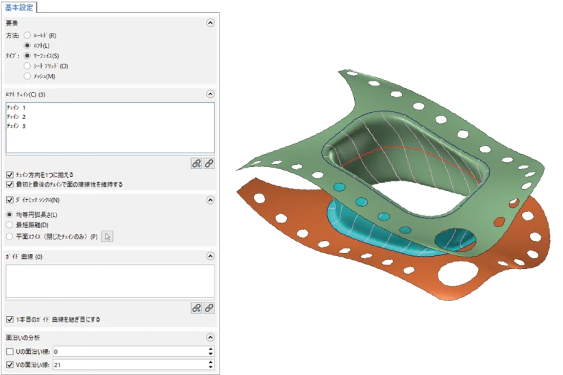 ロフト面コマンドに新機能が追加され、サーフェイスを滑らかにブレンドできる設定が増えています。