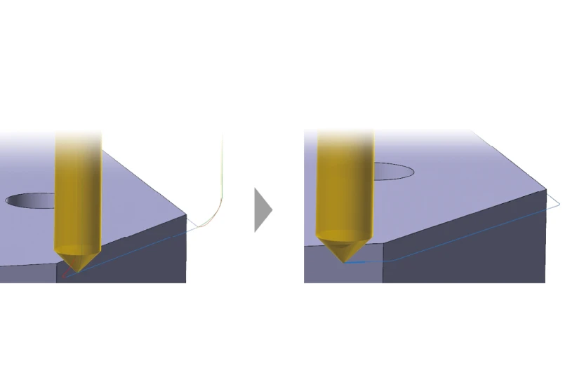 バリ取りのコーナー処理のアルゴリズムが改良され、無駄な退避をせずに切削できるように、動作が自動的に接続されるようになりました。