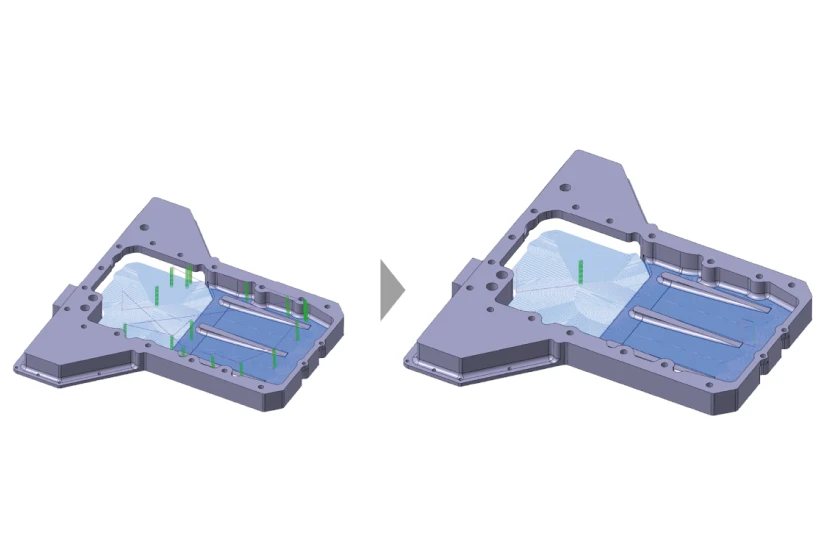 複合軸ポケット加工の「リンクの最小化」で、進入動作を減らし、効率的な加工を行います。