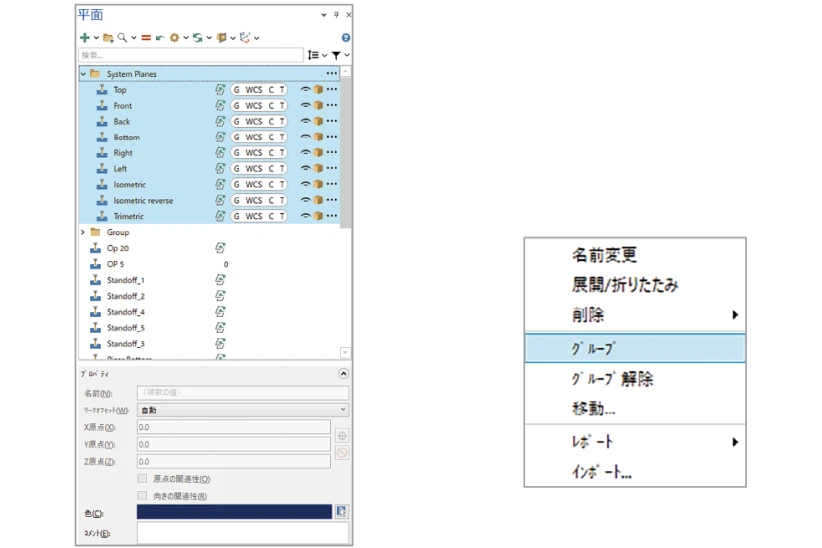 平面マネージャのデザインやオペレーションが一新され、グループ化できるようになるなど、ファイル内の平面が整理しやすく改良されました。