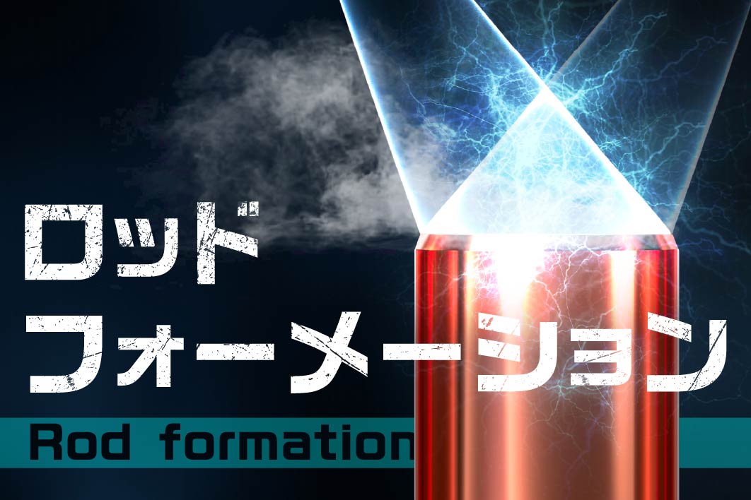 ロッドフォーメーションとは、青色半導体レーザを搭載した「株式会社村谷機械製作所」社製センターフィード、マルチビームのレーザクラッディングマシン「ALPION」で行う線形加工の名称です。青色半導体レーザ、センターフィード、マルチビームのどれが欠けても実現は不可能です。3Dプリンタがレーザや電子ビーム等様々なデバイスで製品をゼロから造形するのに対して、レーザクラッディングマシンはレーザを用いて粉体を溶融凝固させ、基材表面に付加造形やコーティングを行うマシンです。 銅は、レーザ加工がとても難しい材料。光をはね返してしまい、思うように加工できませんが、青色半導体レーザを搭載した、センターフィード、マルチビームのマシン「ALPION」であれば、断続ではなく連続動作かつ高速で引き上げながら粉末の純銅から1本の銅線を作り出す事が出来ます。一般に普及している赤色レーザでは、純銅をはじめとする高反射材には吸収されないため、積層出来ません。対して短波長の青色レーザでは、純銅にしっかり吸収されるため、ムラの無い安定した接合が可能です。 粉末を中心から供給し、複数のレーザ光で加熱溶融するセンターフィード、マルチビームにより、溶かしすぎない理想的な接合を実現します。これにより直径わずか0.5mmでも曲げても折れない高品質な銅線を形成できます。この技術は純銅の積層が難しという常識を覆し、単なる加工ではなくモノづくりの可能性そのものを引き上げる技術です。